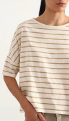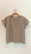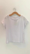 REMERA ESCOTE REDONDO CON MANGA CORTA AL CORTE. ESTAMPADO EN DELANTERO. RUEDO RECTO